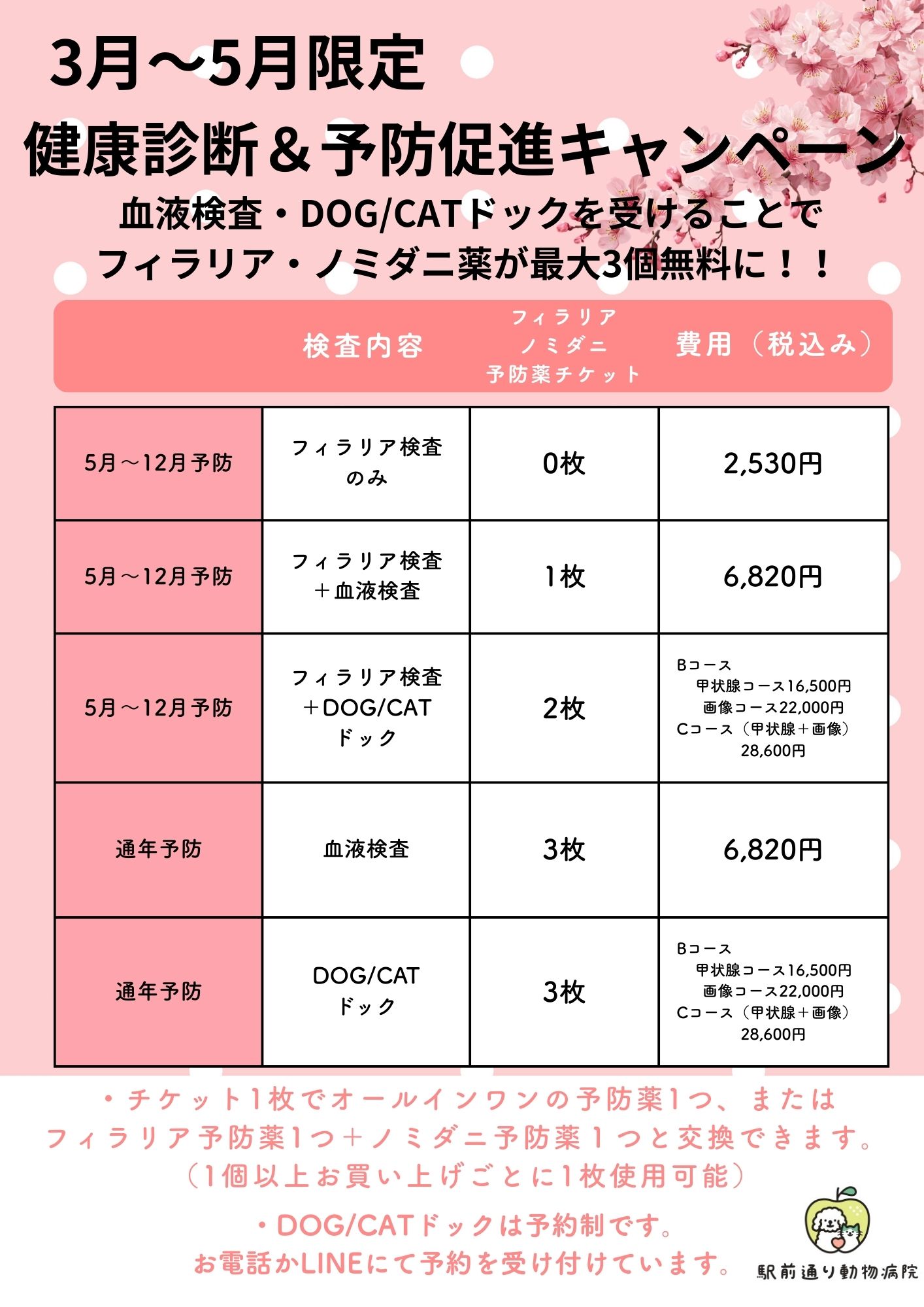 3~5月限定ですが、フィラリア・ノミダニ薬が最大3個無料になります!